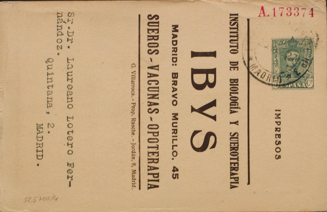 EP508. 1927. 5 cts green on Entire Card Private Postal IBYS (Faculty of Medicine Valladolid) Internal Mail of MADRID. MAGNIFICENT AND RARE. (Laiz 2006: 350 Euros)