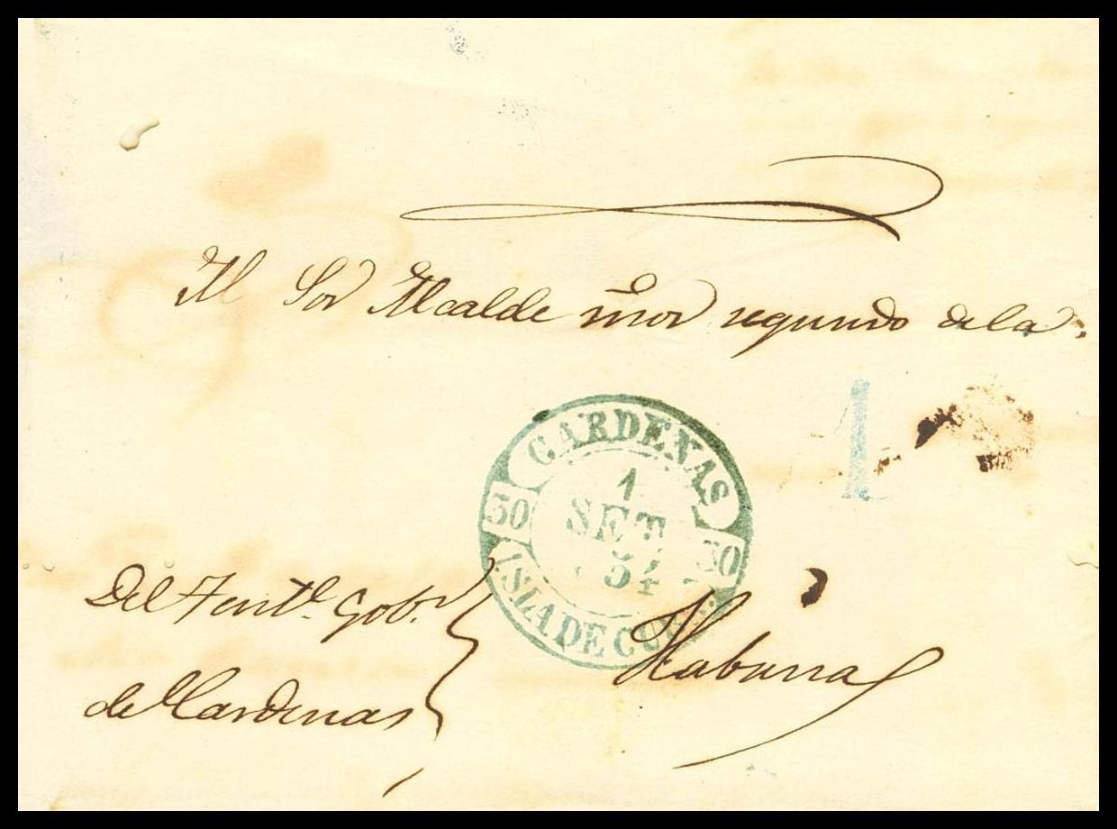 |ABOUT|1854. CARDENAS in HAVANA. Baeza CARDENAS / ISLAND OF CUBA, in blue. MAGNIFICENT.