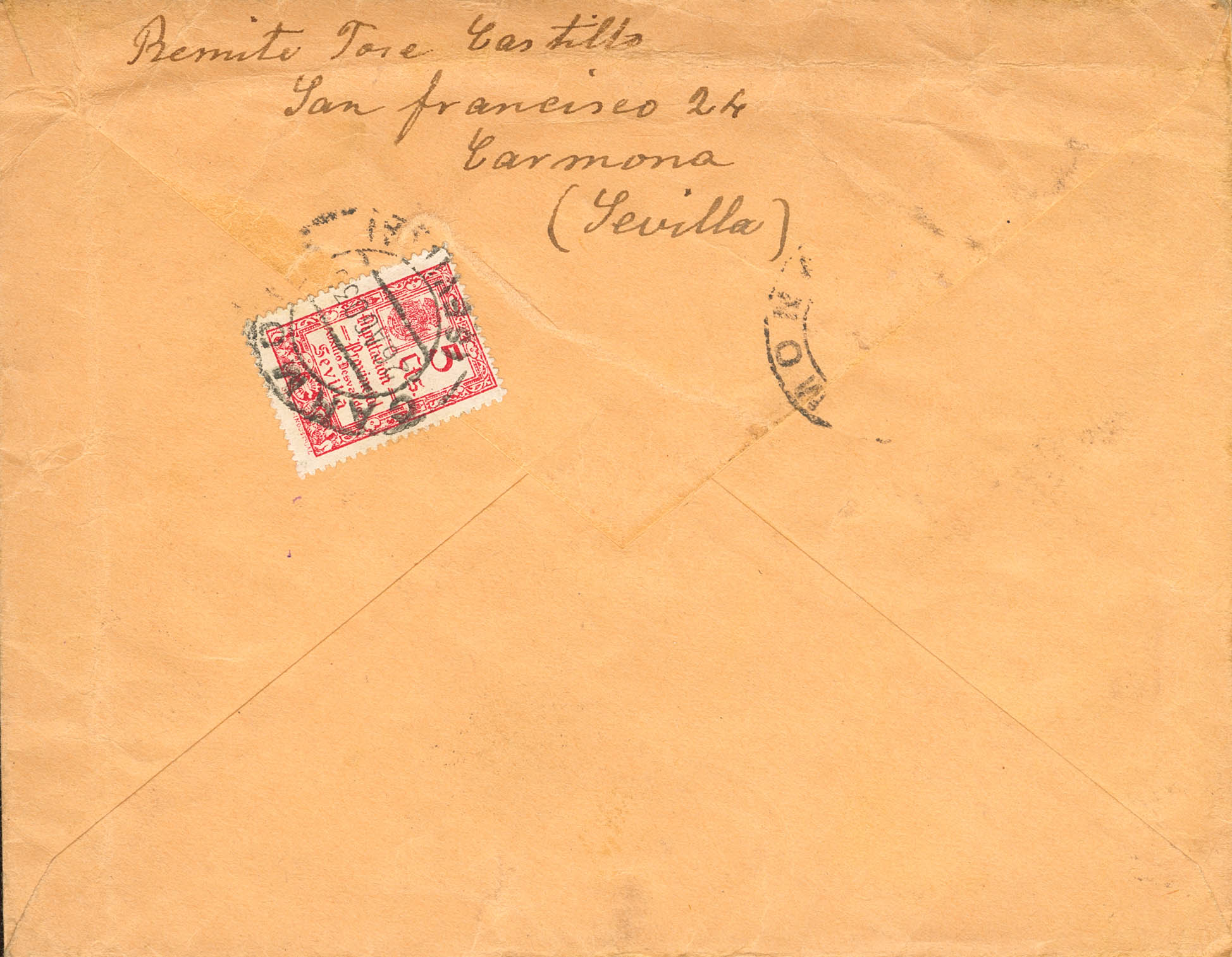 Civil War. Military Censorship Nationalist Order. MILITARY CENSORSHIP / CARMONA, Seville. MAGNIFICENT.