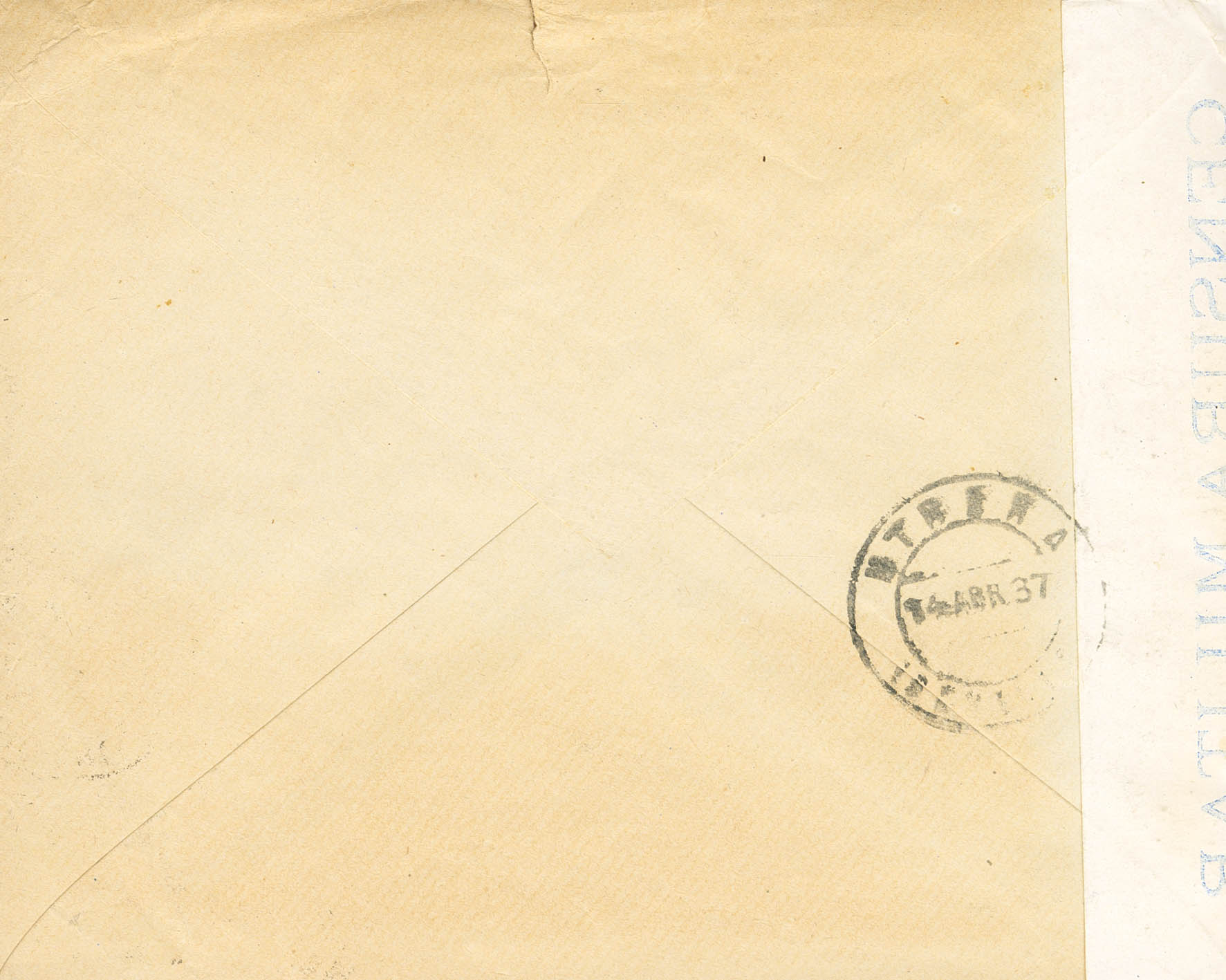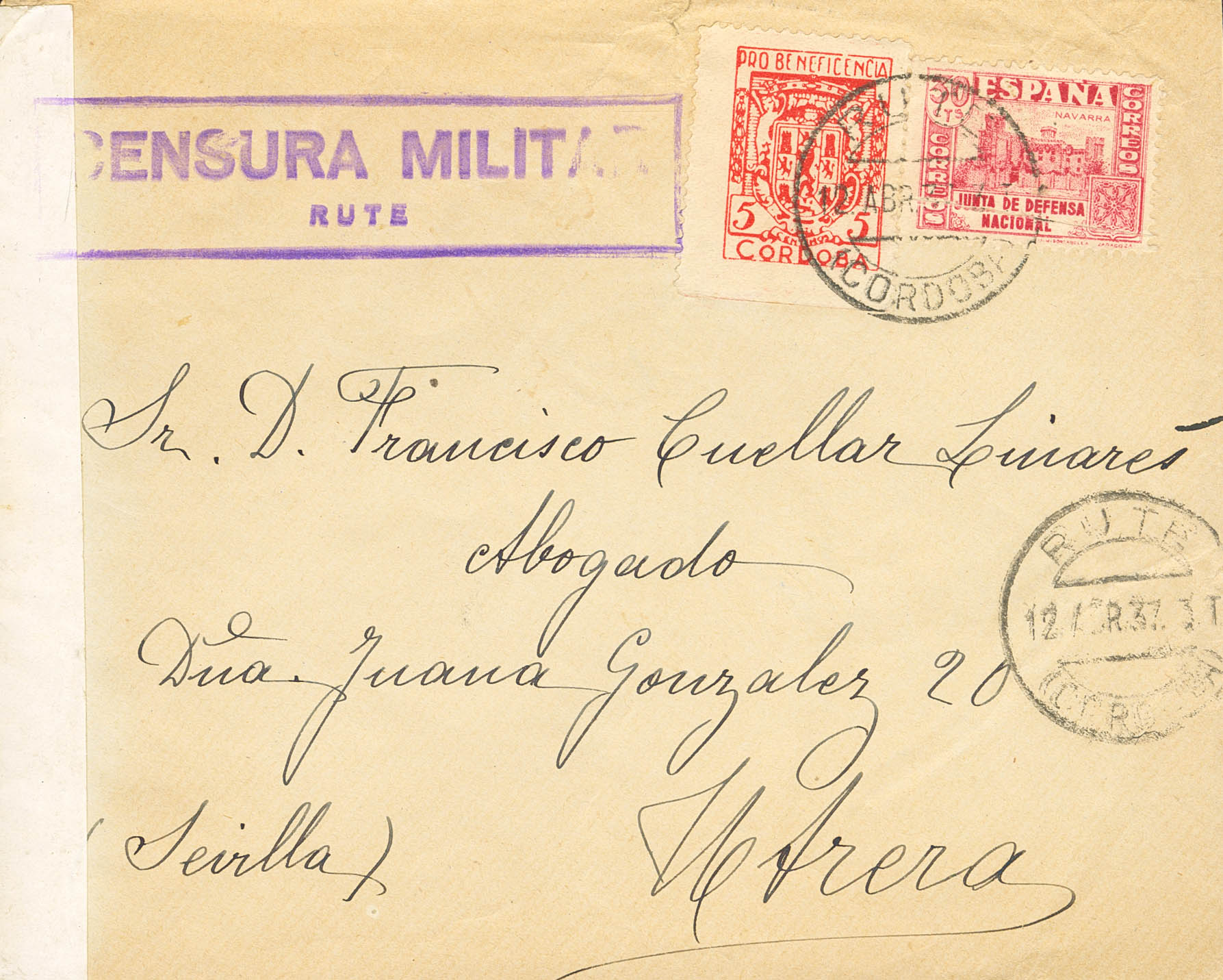 Civil War. Military Censorship National Announcement. MILITARY CENSORSHIP / (CORDOBA), arrival on the back. MAGNIFICENT.