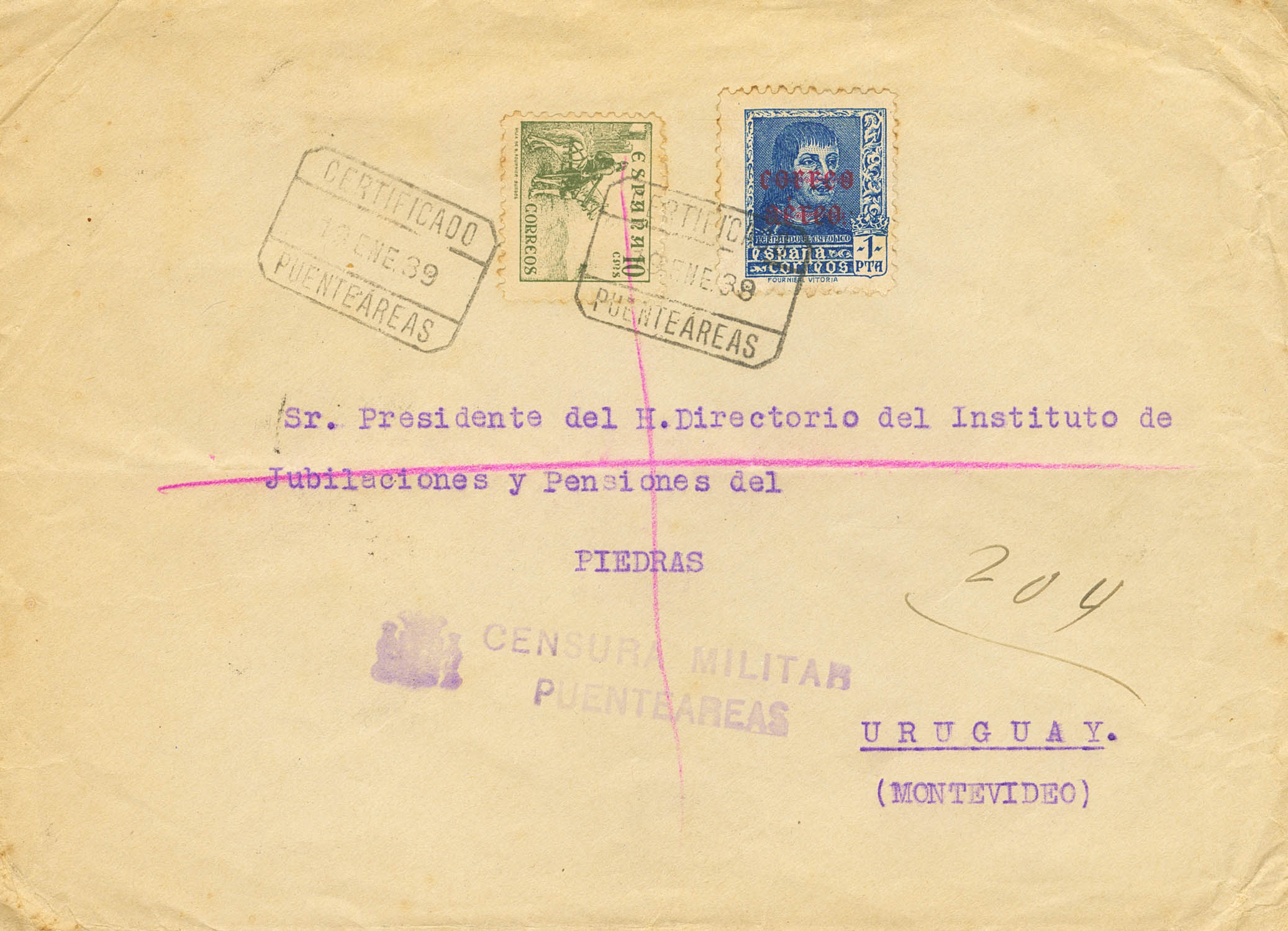 Civil War. Military Censorship Nationalist Order. MILITARY CENSORSHIP / BRIDGE AIR, in Galicia, arrival on the back. MAGNIFICENT.