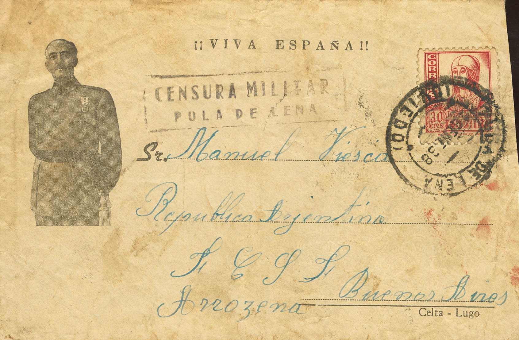 Civil War. Military Censorship Nationalist Order. POLA DE LENA / (OVIEDO), arrival on the back. MAGNIFICENT.
