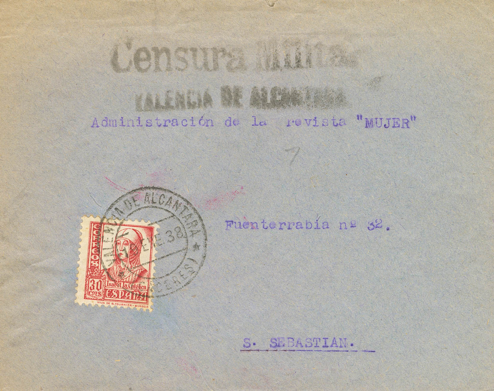 Civil War. Military Censorship Nationalist Order. MILITARY CENSORSHIP / VALENCIA DE ALCANTARA, in Cáceres, arrival on the back. MAGNIFICENT.