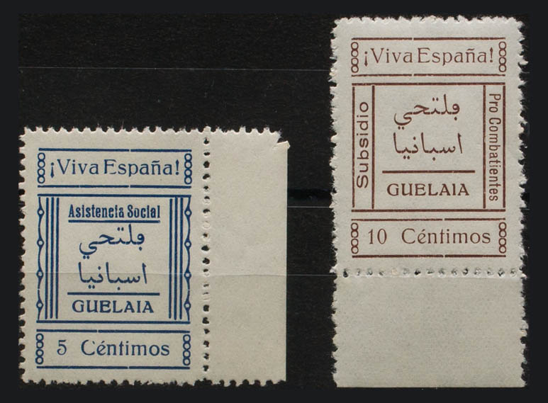 ★1937. 5 cts blue GELAIA SOCIAL ASSISTANCE and 10 cts brown GELAIA SUBSIDIO PRO-FIGHTERS. MAGNIFICENT. (Allepuz 1, 3)