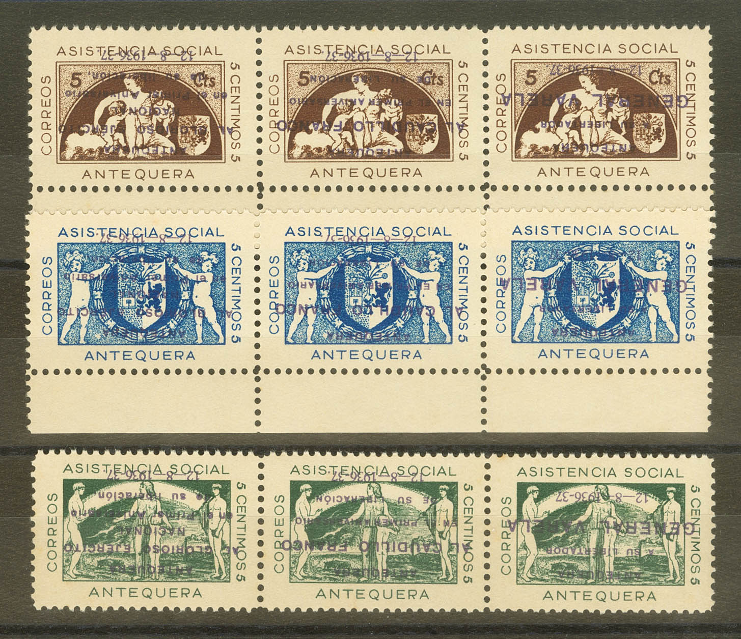 ★★1937. Complete series, in triptychs with the three types of overload. ANTEQUERA (MALAGA). MAGNIFICENT AND RARE.