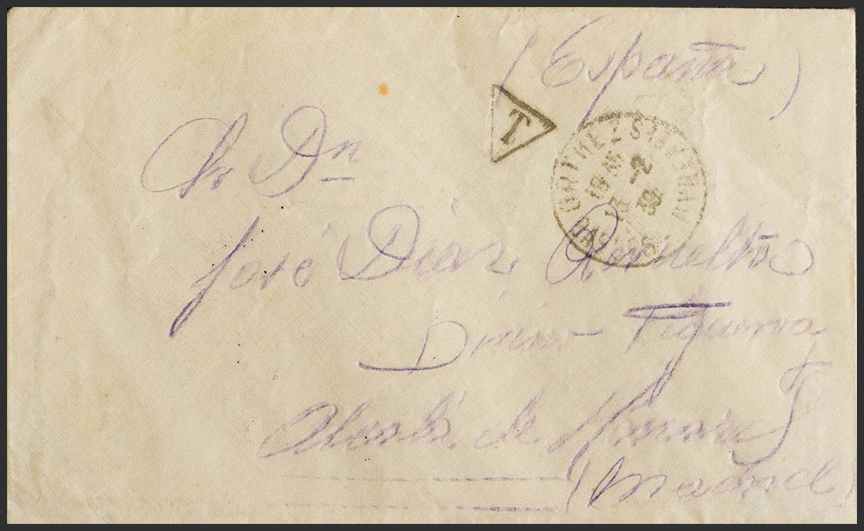1939. ORTHEZ (FRANCE) to ALCALA DE HENARES (possibly sent from the Gurs Camp, when it was not yet established as a Refugee Camp). Priced in transit for lack of postage. MAGNIFICENT AND RARE.