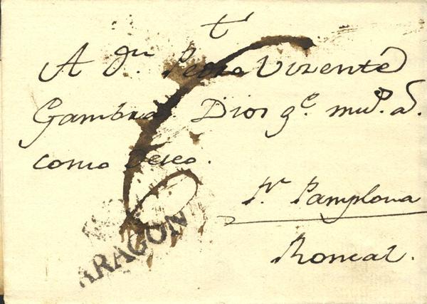 1798. ZARAGOZA to RONCAL. ARA / GON / Z brand (PE 15). VERY RARE.
