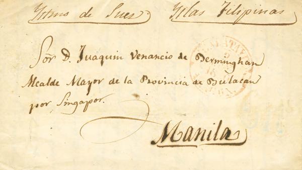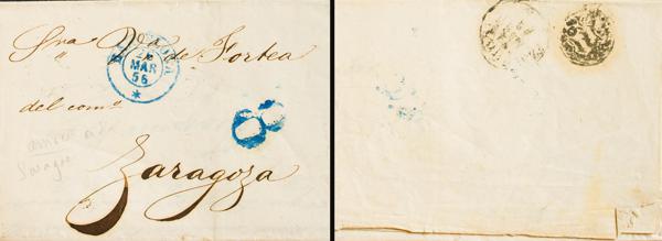 1856. BARCELONA to ZARAGOZA. Arrival mark "Z", in black on the back (PE45) 2004 edition. MAGNIFICENT.