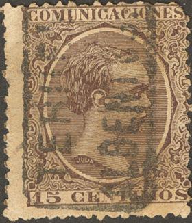 219. 1889. 15 cts chestnut violet. Mail postmark VIVEL DE RIO / TERUEL.