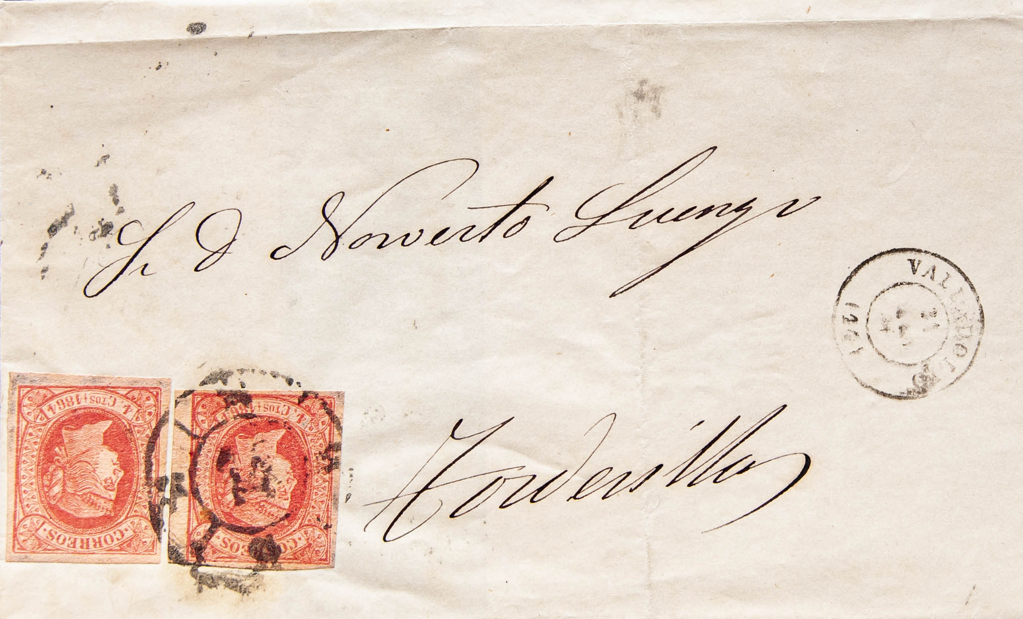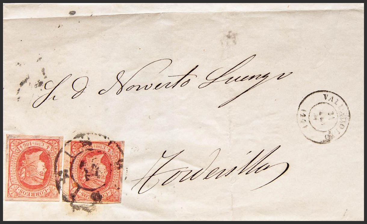 English Castilla y León. Postal History. R.CARRETA Nº14, from Valladolid, double carriage. MAGNIFICENT.