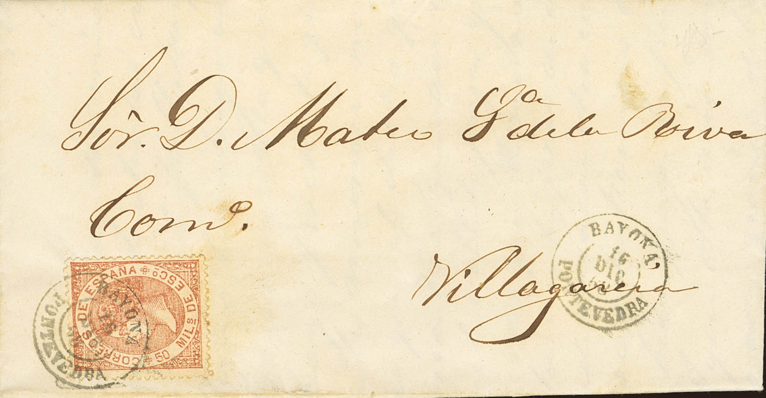 Galicia. Postal History. BAYONA / PONTEVEDRA. MAGNIFICENT.