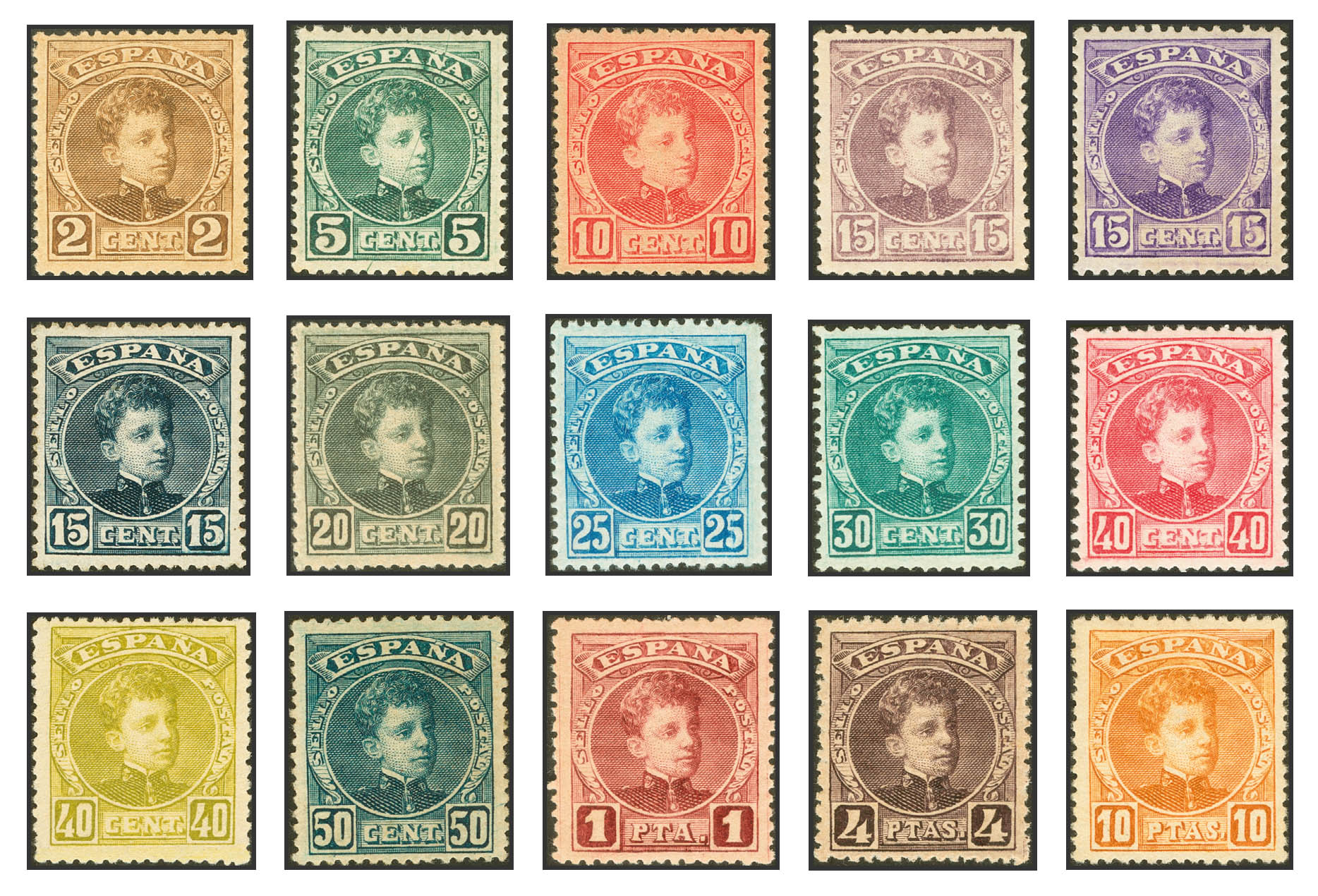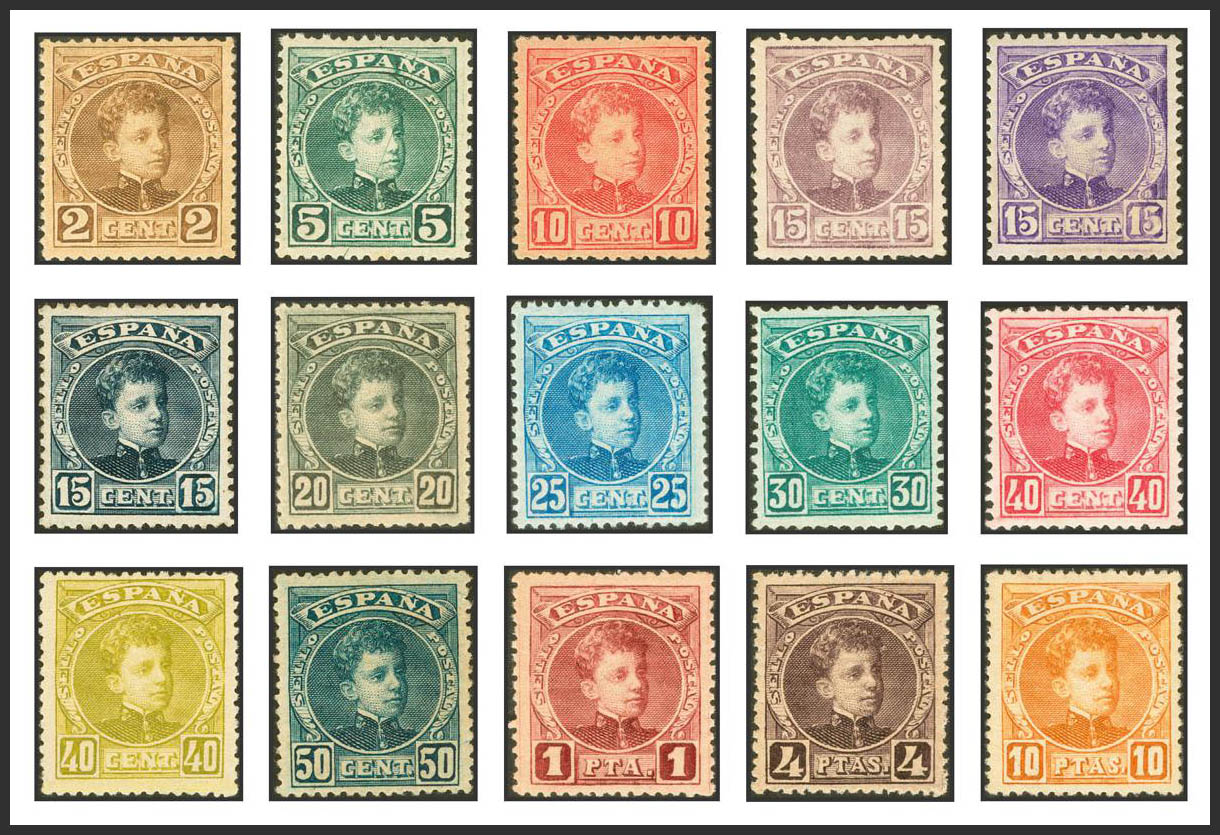 ★★ 241/55. 1901. Serie completa. Excelentes centrajes y color muy intenso en cada uno de los valores. MAGNIFICA Y EXTRAORDINARIAMENTE RARA EN ESTA EXCEPCIONAL CALIDAD, CADA VALOR HA SIDO SELECCIONADO INDIVIDUALMENTE. (todos los valores claves certificados individuales de CEM, COMEX o GRAUS).