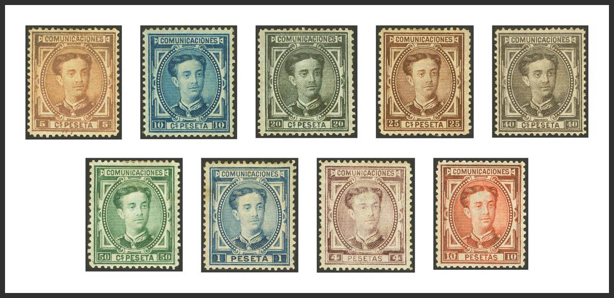 ★ 174/82. 1876. Complete series. Excellent centering. MAGNIFICENT AND RARE IN THIS EXCEPTIONAL QUALITY. Cert. GRAUS (4 pts) and CEM (40 cts).