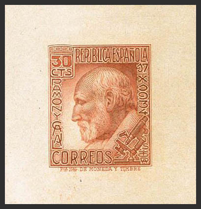 (★) 680P. 1930. 30 cts red chestnut. PUNCH PROOF, with imprint. MAGNIFICENT AND VERY RARE, NOT REVIEWED IN GALVEZ.
