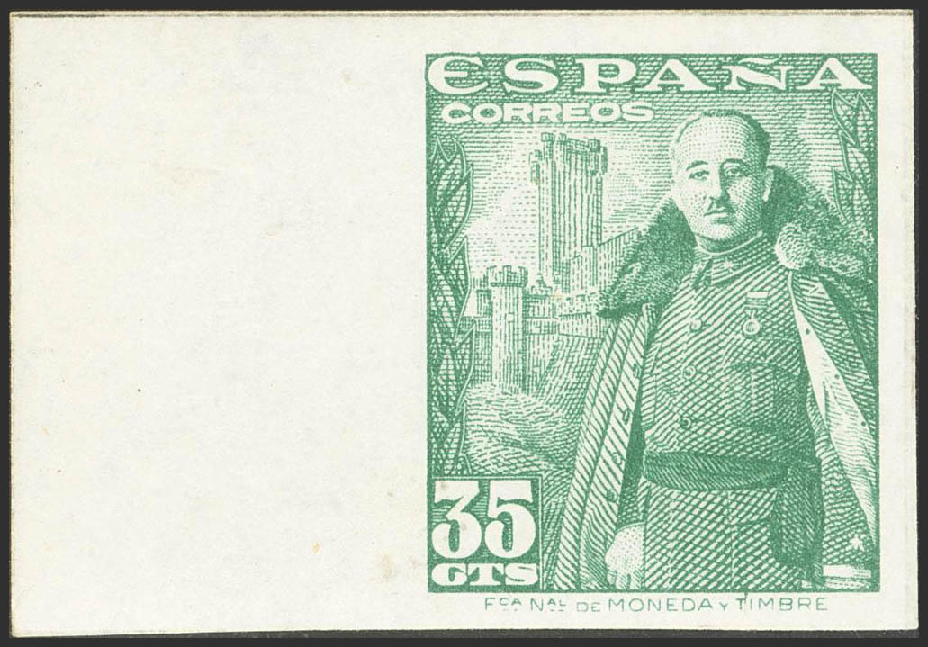 ★★ 1026s. 1948. 35 cts green, leaf edge. WITHOUT TOOTH. MAGNIFICENT AND VERY RARE. Cert. EMF. Edifil 2024: 440 Euros