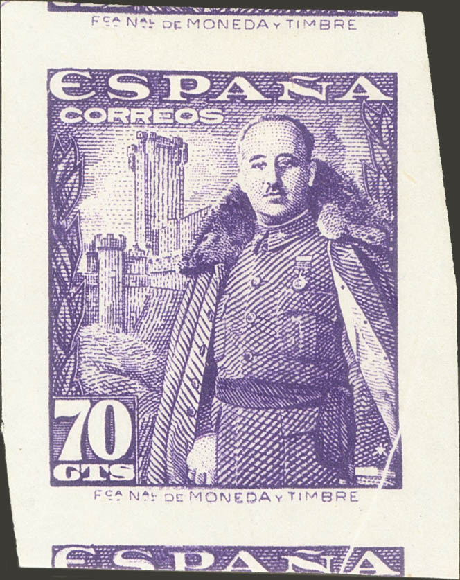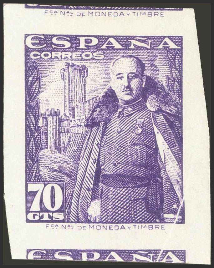 ★ 1030s. 1948. 70 cts violet. WITHOUT TOOTH. MAGNIFICENT AND EXTRAORDINARY RARE, NOT REVIEWED WITHOUT DENTS IN THE CATALOG, WITHOUT A DOUBT IT IS THE MOST SPECTACULAR COPY OF THE VERY FEW KNOWN. Cert. EMF.