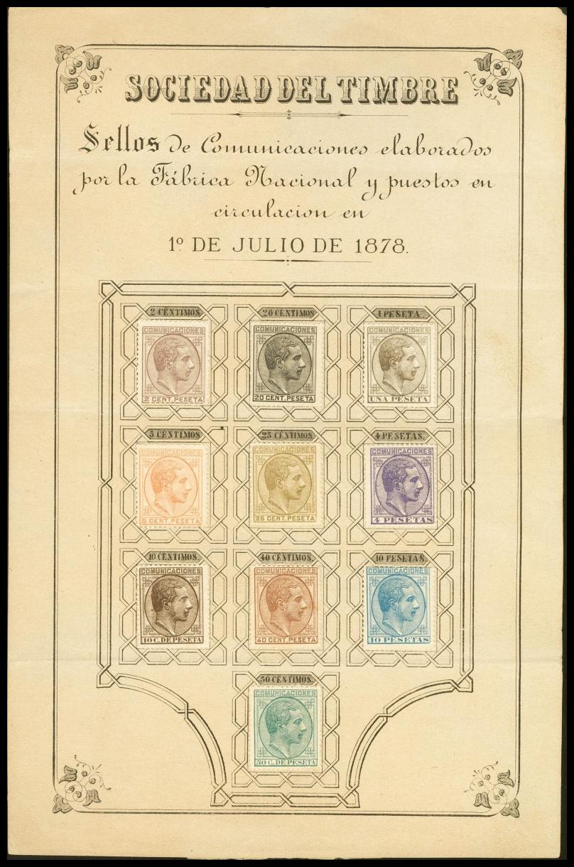 (★) 190/99. 1878. Complete series, affixed to a model sheet from the Stamp Society. MAGNIFICENT AND VERY RARE.