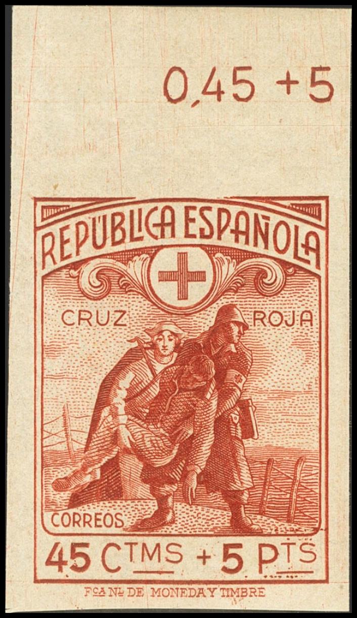 English ★★ 767s. 1938. 45 cts + 5 pts red, leaf border. IMPERFORATED. MAGNIFICENT. Edifil 2025: +235 Euros