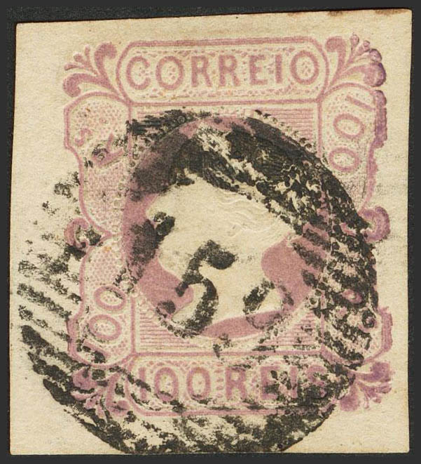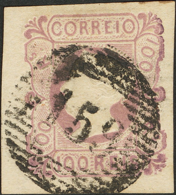 Yvert 4. 1853. 100 reis lila. Matasello numeral "159", de Estremoz. MAGNIFICO. Yvert 2012: 2.400 Euros