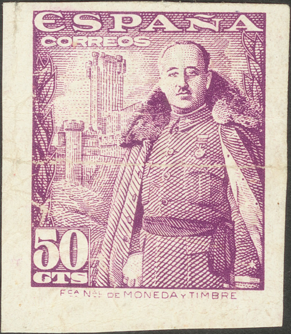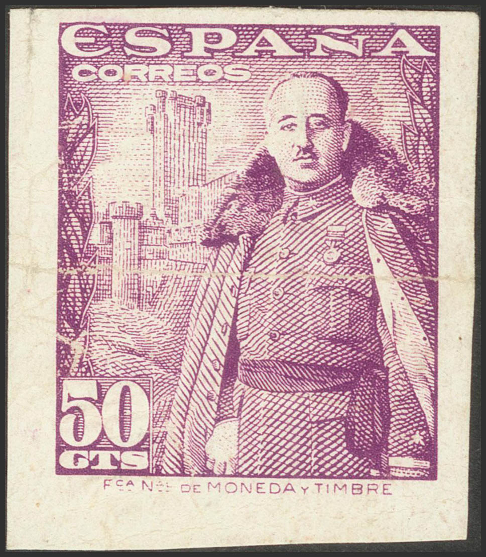 ★★ 1029s. 1948. 50 cts lila (conservación habitual). SIN DENTAR. MAGNIFICO Y EXTRAORDINARIAMENTE RARO, ES LA SEGUNDA VEZ QUE OFRECEMOS ESTE SELLO SIN DENTAR EN MAS DE QUINCE AÑOS DE DESEMPEÑO PROFESIONAL. Cert. COMEX.