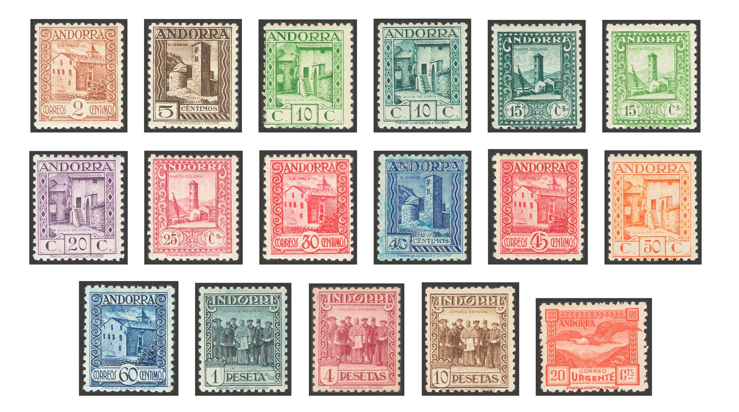 ★★ 28/44. 1935. Complete series, most of the excellent centering values (especially the 40 cts and the 1 pts). MAGNIFICENT AND VERY RARE WITHOUT FIXING STAMPS. Certificate CEM (40 cts) and GRAUS (1 pts). Building 2021: Edifil Euros