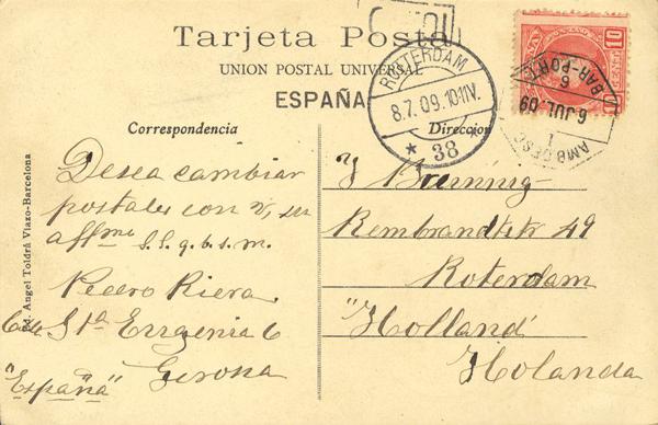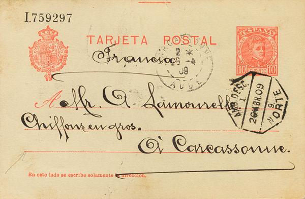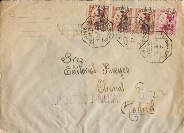 (1918ca). Internal Mail of BARCELONA. Franchise brand ADMON PRAL CORREOS BARCELONA / *CARTERIA*. MAGNIFICENT AND RARE.