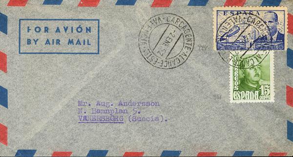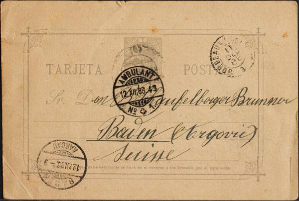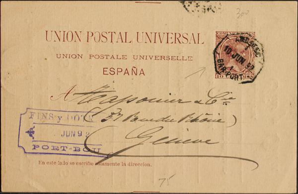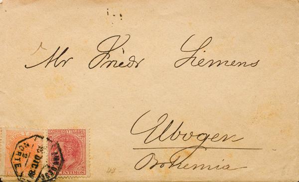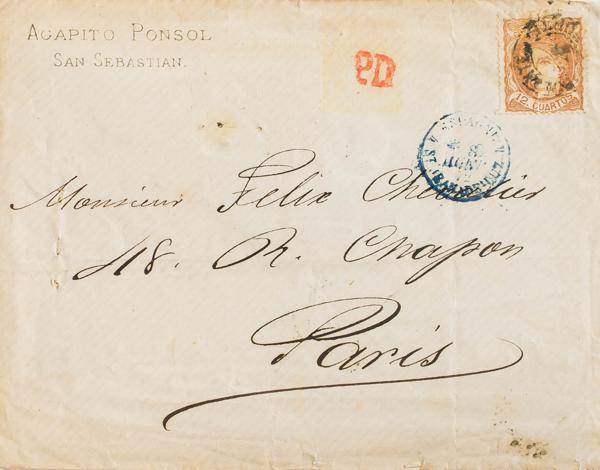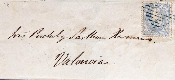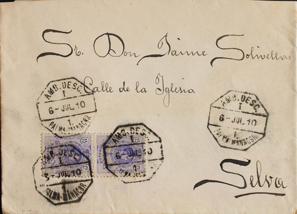 245. (1901ca). 15 cts lilac chestnut. MOLLERUSA to TARREGA. Postmark CARTERIA / MOLLERUSA, in blue. MAGNIFICENT AND RARE.