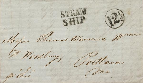 1850. MATANZAS in PORTLAND (USA). STEAM / SHIP brand, in black, size "12½", in the same color and writing "Por Ohio". MAGNIFICENT.