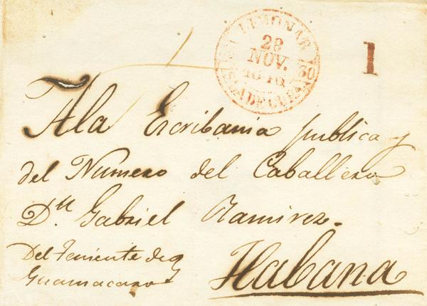 |ABOUT|1846. GUAMACARUS in HAVANA. Baeza LIMONAR / ISLAND OF CUBA, in red. MAGNIFICENT AND VERY RARE.