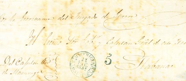 |ABOUT|1848. MACURIGES to CARDENAS. Baeza BEMBA / ISLAND OF CUBA, in blue-green. MAGNIFICENT AND RARE.