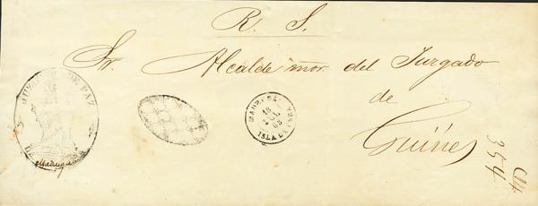 1868. EARLY TO GÜINES. Brand GRILL COLONIAL, indicating that the letter circulated free of porte. MAGNIFICENT AND RARE.