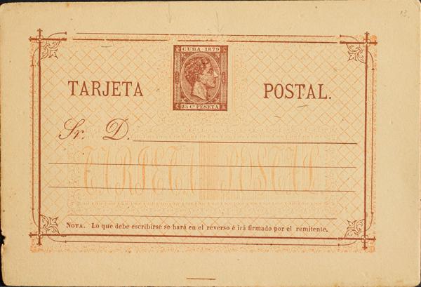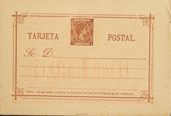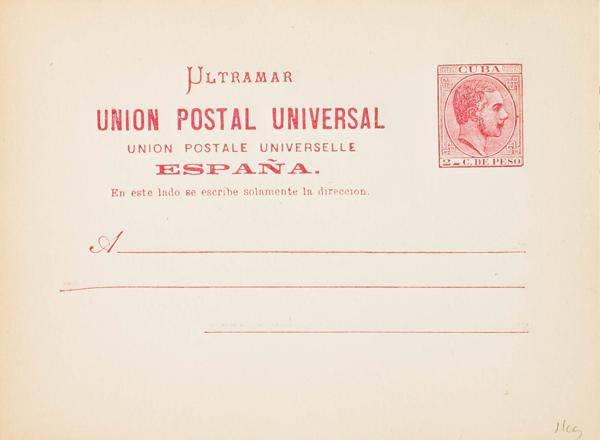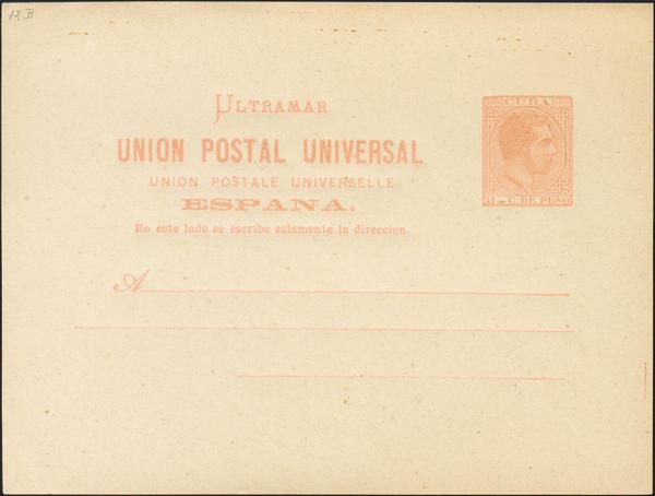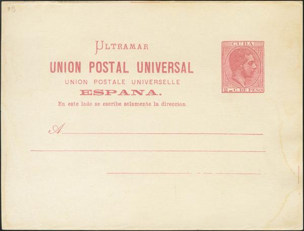 (★) EP11Ca. 1882. 2 cents carmine on Whole Postal Card (small stains). Variety WITHOUT TILDE IN SPAIN. MAGNIFICENT. Edifil 2019: 135 Euros