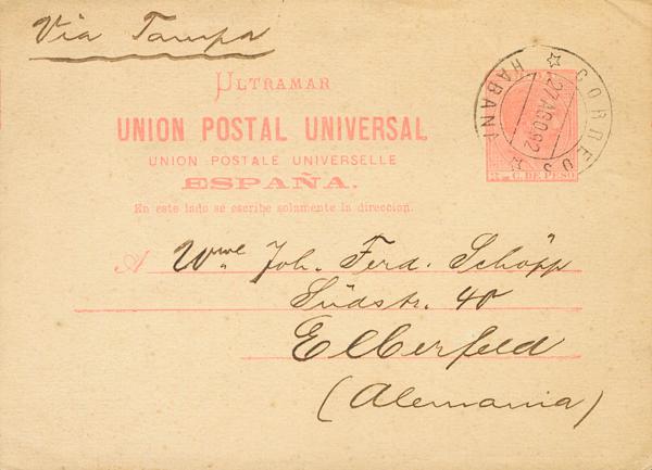 EP12. 1882. 3 cents rose on Entire Card Postcard from HAVANA to EBERFELD (GERMANY). On the front handwritten "Vía Tampa". MAGNIFICENT.