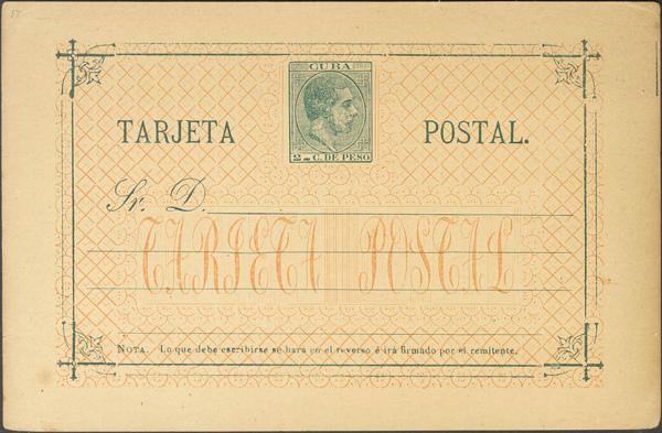 (★) EP15. 1882. 2 cents green on Whole Postal Card. MAGNIFICENT. Edifil 2020: 78 Euros