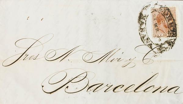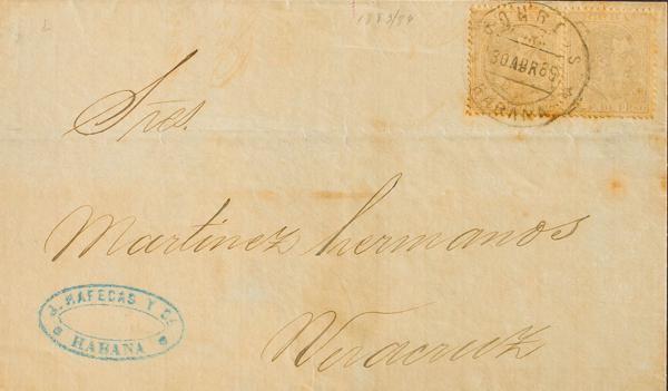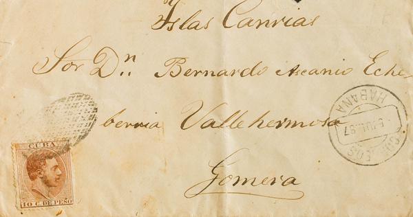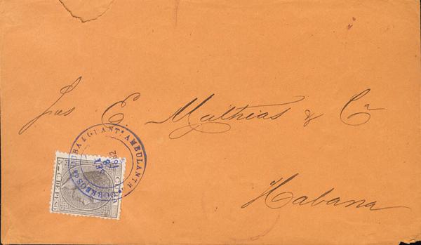 102. 1887. 10 chestnut cts. HAVANA to GOMERA (one of the seven Canary Islands, with a very sparse population in the 19th century). MAGNIFICENT AND ONLY KNOWN WITH THIS DESTINATION.