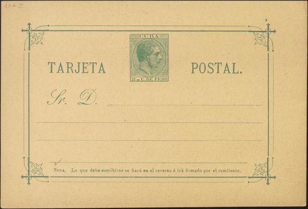 ★ EP22. 1888. 2 cts green on Postal Stationery (Type II). MAGNIFICENT. Edifil 2015: 108 Euros
