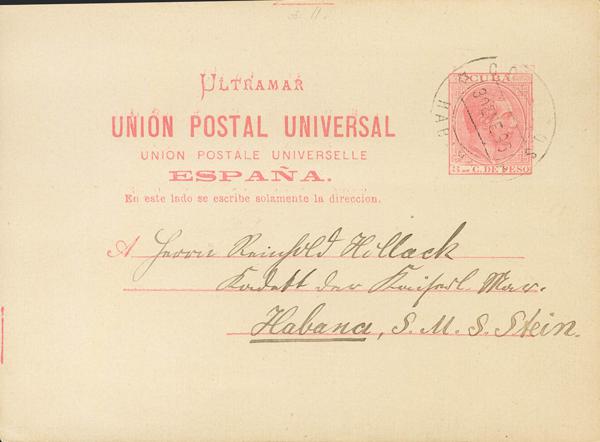 EP14v. 1894. 3 cents pink envelope Card Post Card, return, from HAVANA to KIEL (GERMANY). On the arrival front. MAGNIFICENT.