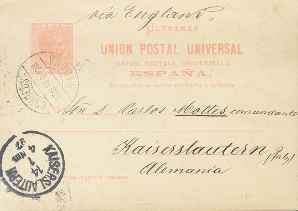 EP14i. 1897. 3 cents pink on Whole Postal Card (one way) from HAVANA to KAISERSLAUTERN (GERMANY). At the front arrival. MAGNIFICENT.