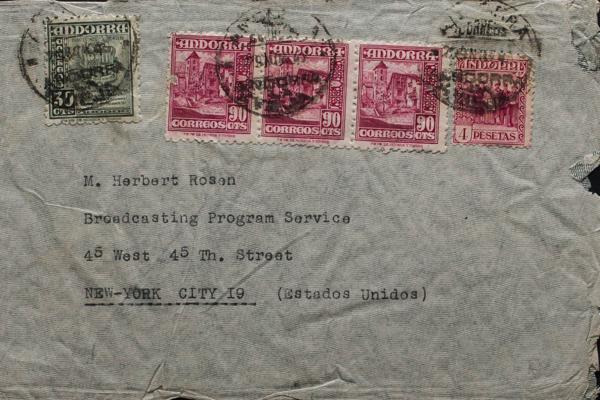 Andorra. Joan Pérez, philatelic dealer. Addressed to NEW YORK, arrival on the back. MAGNIFICENT.