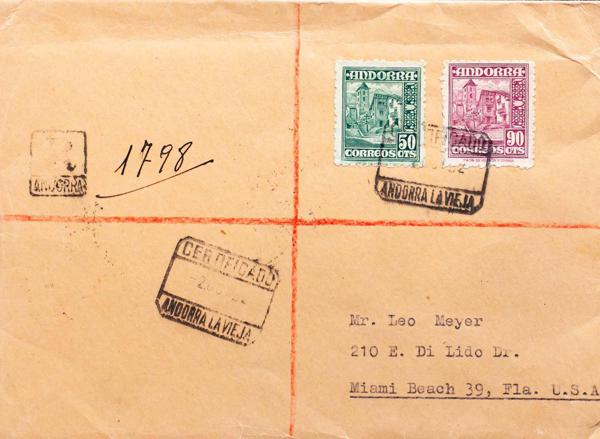Andorra. Certificate addressed to MIAMI, arrival on the back. MAGNIFICENT.