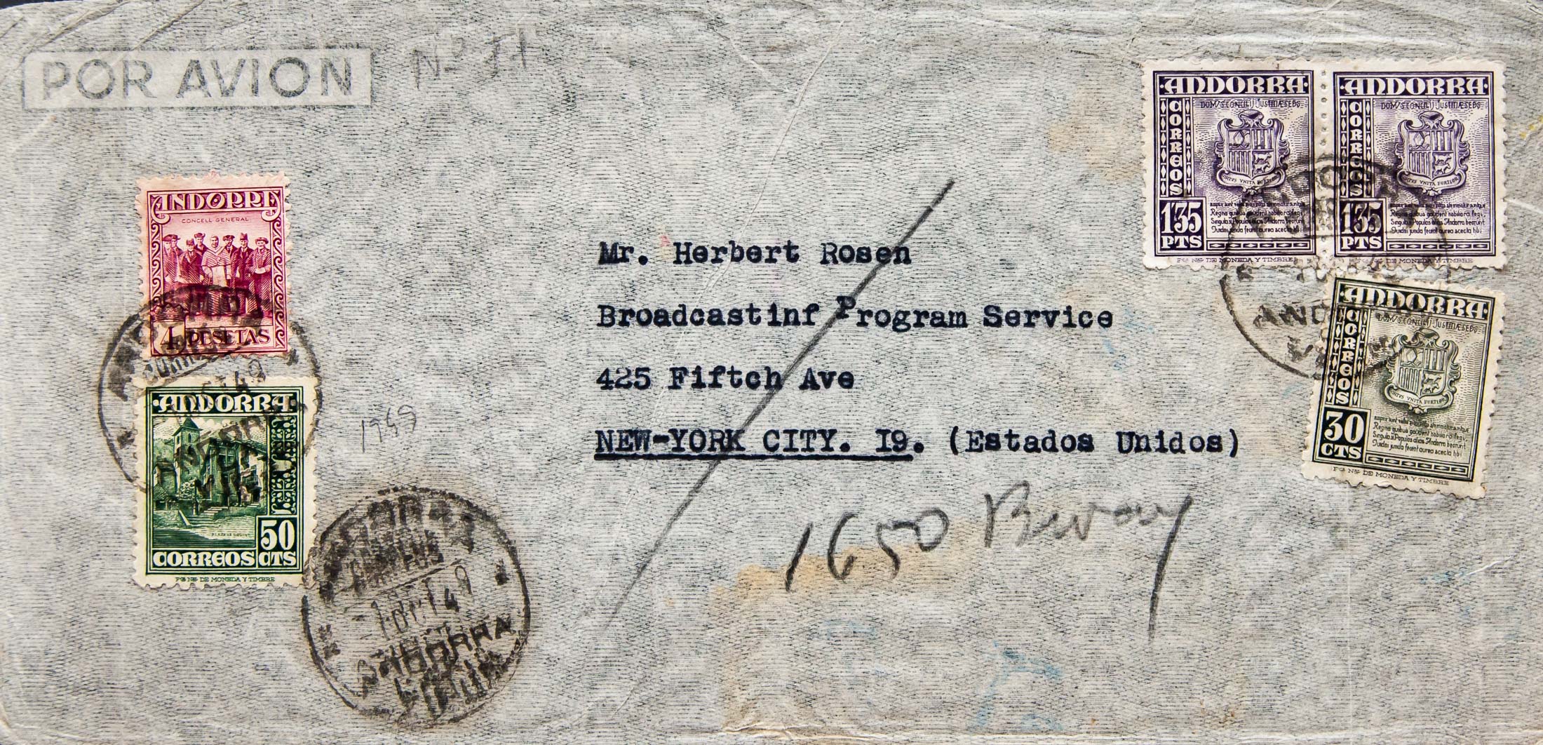 Andorra. ANDORRA / LA VIEJA, arrival on the back. MAGNIFICENT AND SPECTACULAR POSTAGE.