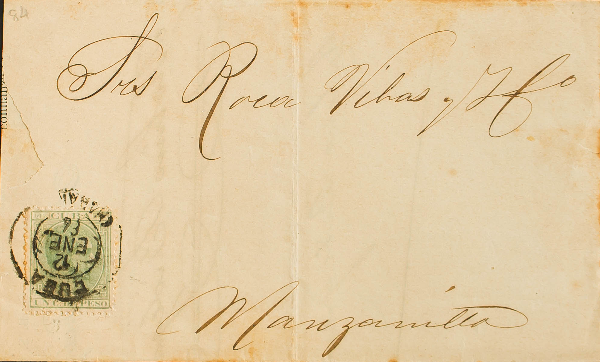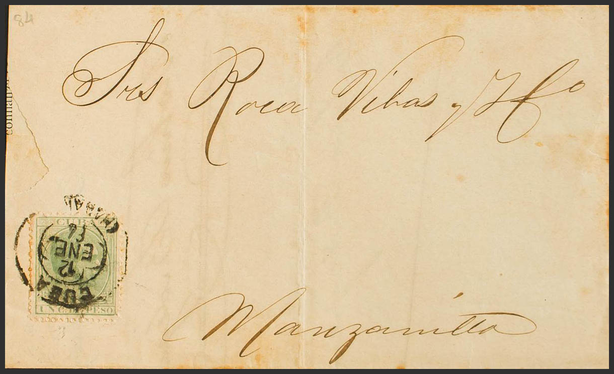 68. 1884. 1 cts green. Printed from HAVANA to MANZANILLO (CUBA). MAGNIFICENT AND UNUSUAL.