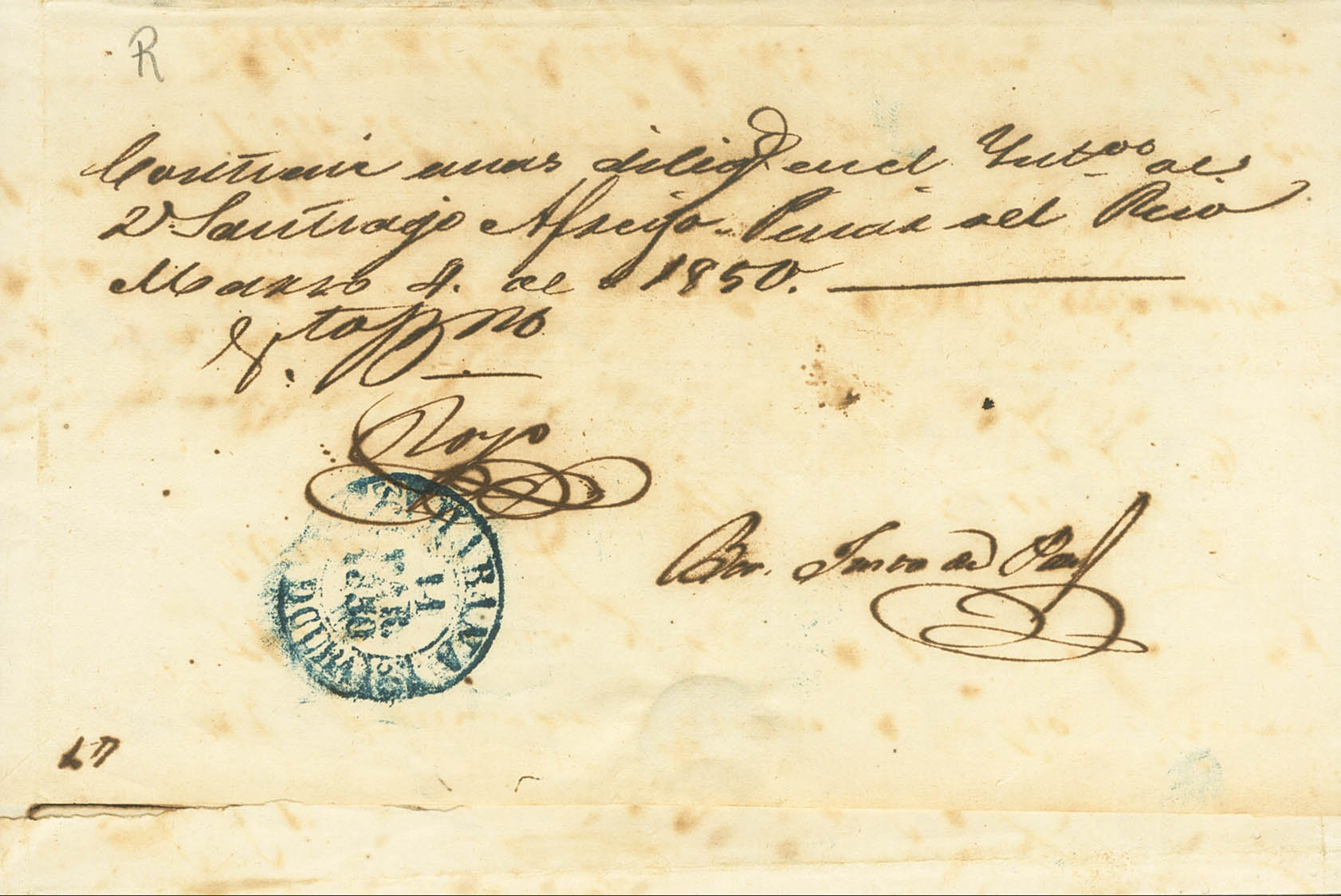 |ABOUT|1850. PINAR DEL RIO in HAVANA. Baeza PINAR D.RIO / ISLAND OF CUBA, in blue. MAGNIFICENT AND RARE.