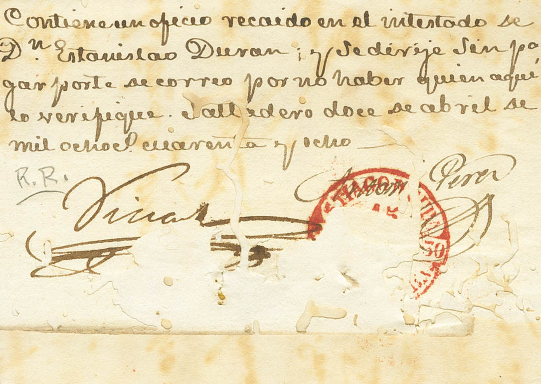 |ABOUT|1848. SANTA CATALINA DEL SALTADERO to SANTIAGO DE CUBA. Baeza STA.CATALINA / ISLAND OF CUBA, in red. MAGNIFICENT AND VERY RARE.