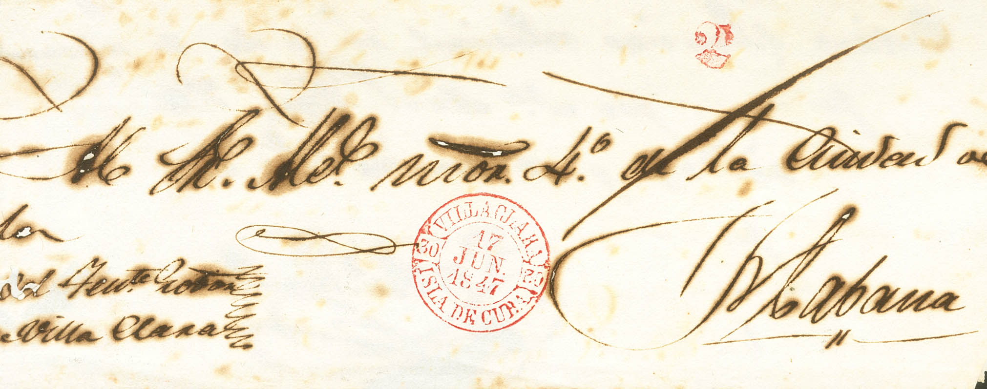 |ABOUT|1847. VILLA CLARA in HAVANA. Baeza VILLACLARA / ISLAND OF CUBA, in red. MAGNIFICENT AND VERY RARE PRINT.