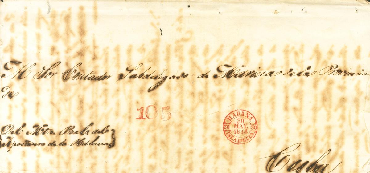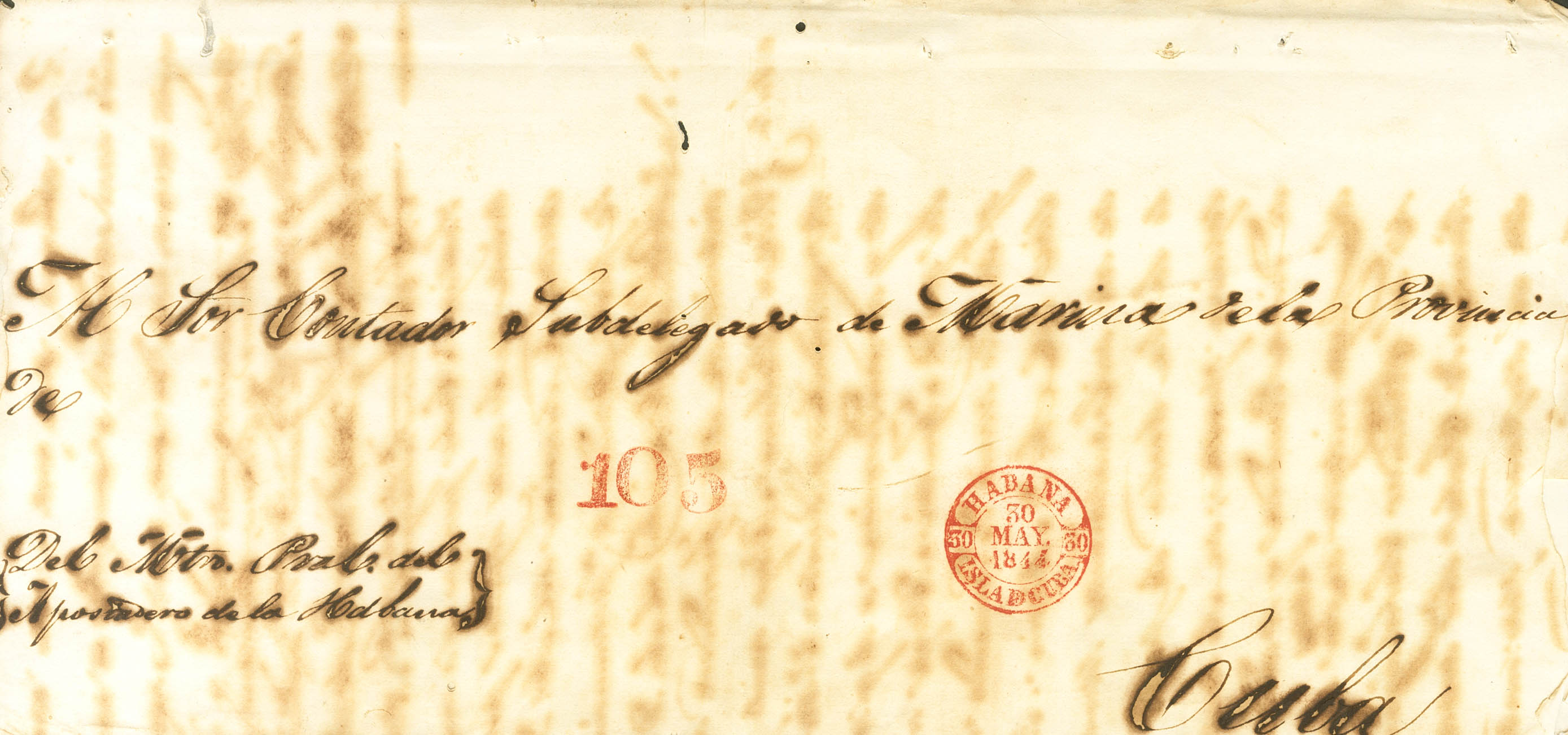 |COVER|1844. Judicial Proxy from HAVANA to SANTIAGO DE CUBA. Baeza HAVANA / CUBA ISLAND, in red. MAGNIFICENT PRINTING.