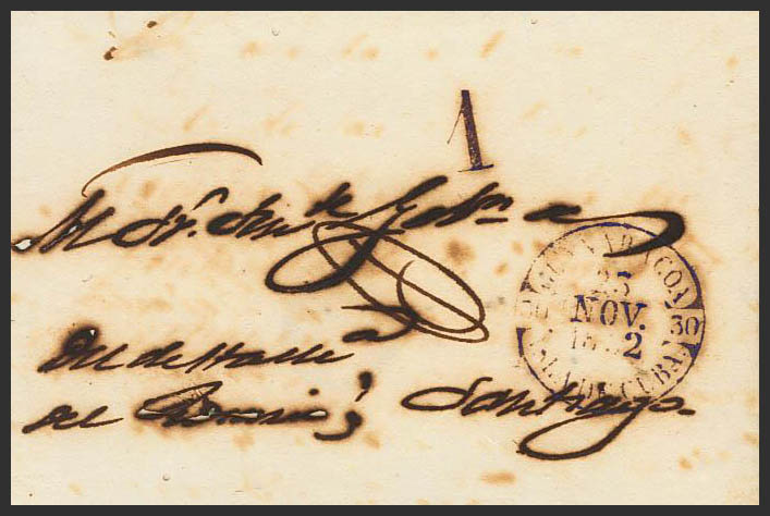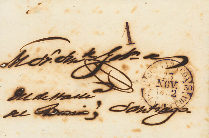 1852. GUANABACOA to SANTIAGO DE CUBA. Baeza GUANABACOA / ISLAND OF CUBA. MAGNIFICENT AND VERY RARE.