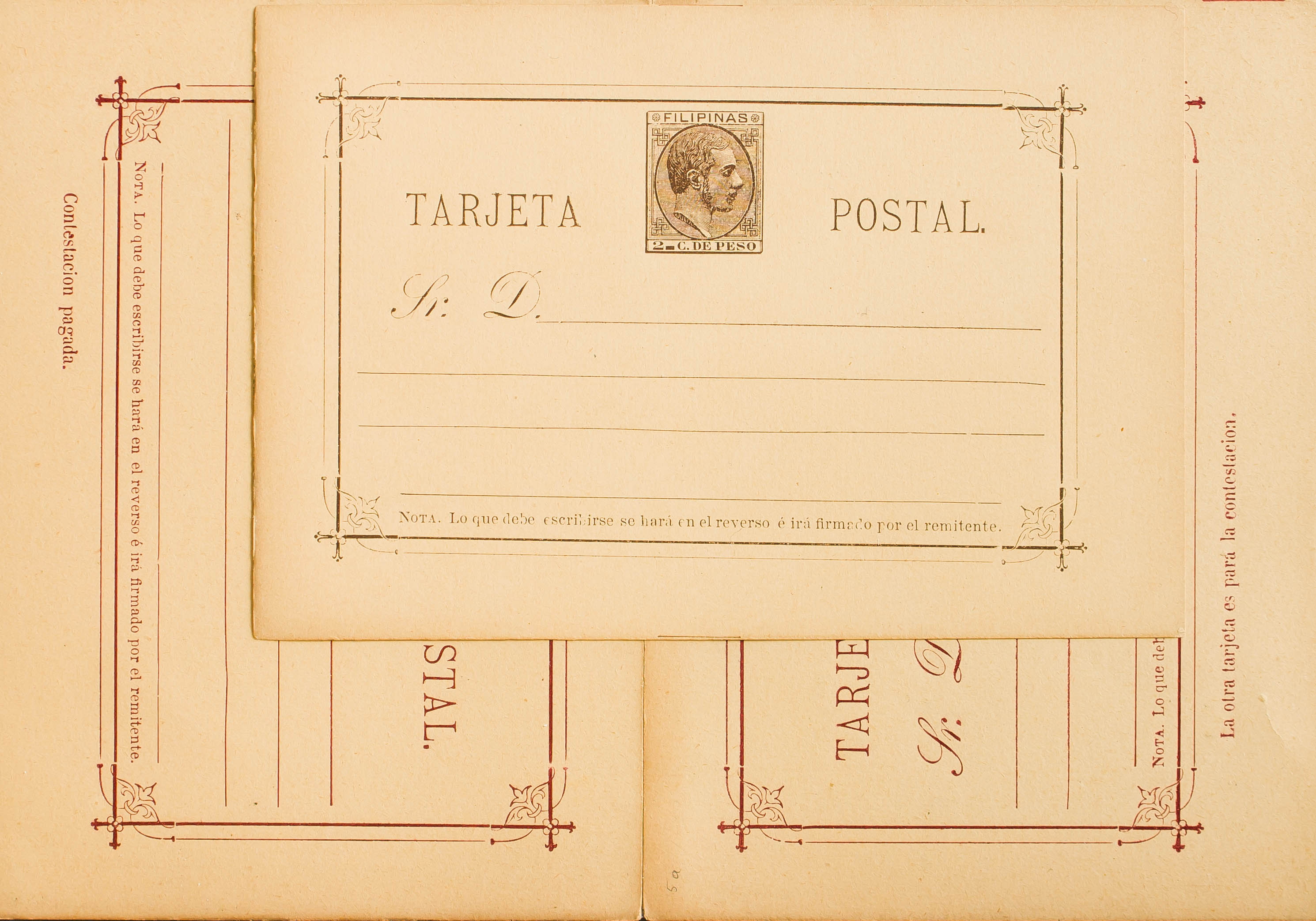 (★) EP4/5. 1889. 2 cts chestnut on Postal Stationery Card and 3 cts + 3 cts carmine on Round Trip Postal Stationery Card. MAGNIFICENT. Edifil 2015: 91 Euros