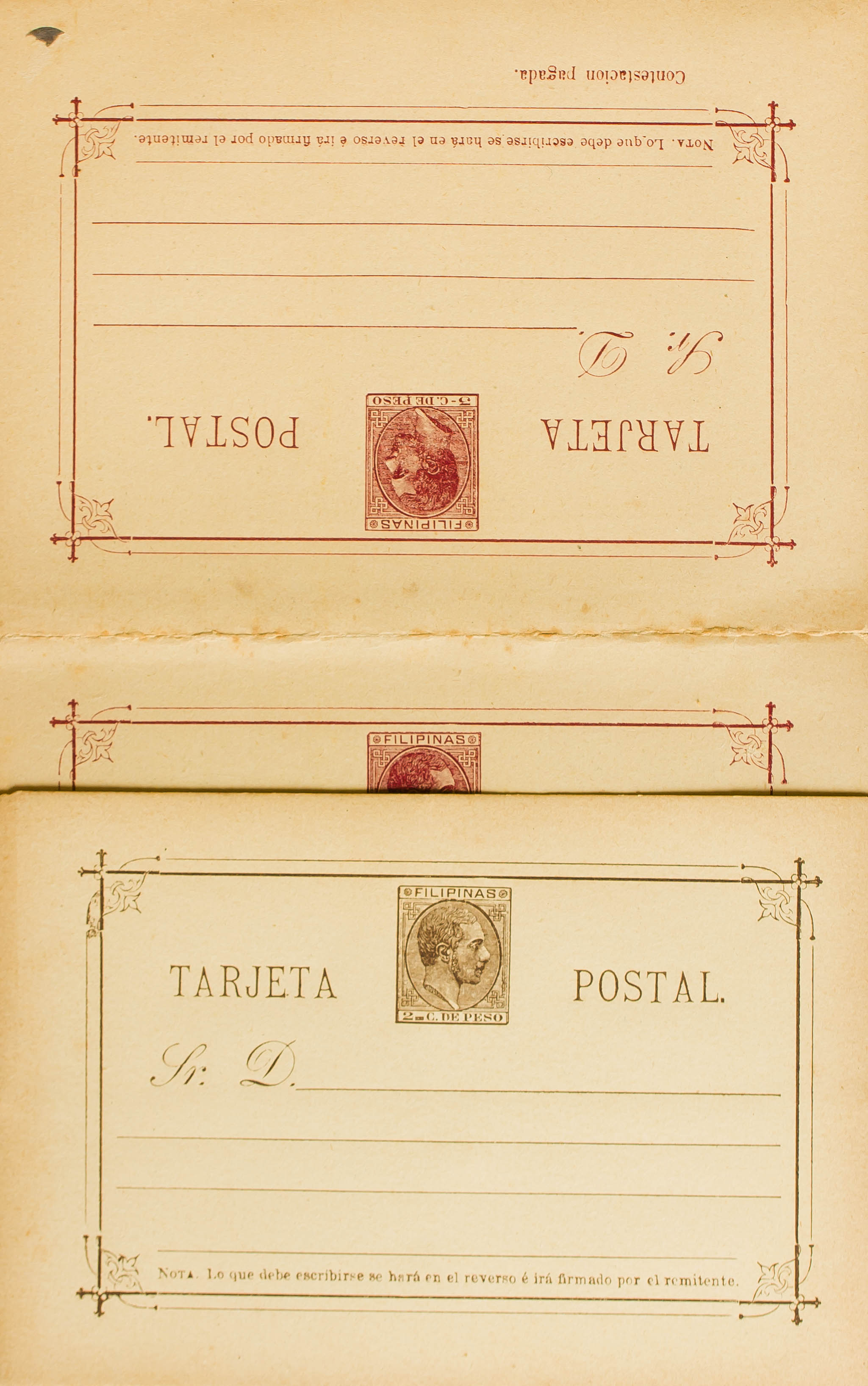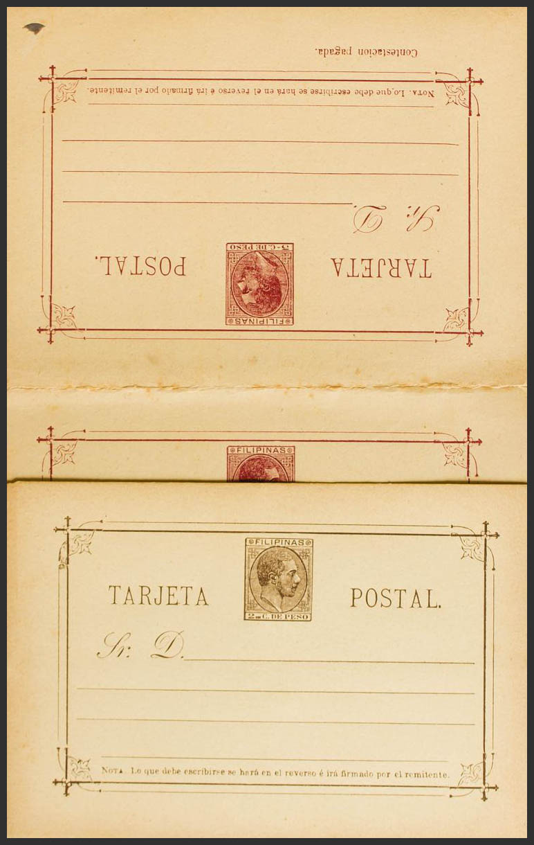 English (★) EP4/5. 1889. 2 cents chestnut and 3 cents+3 cents carmine on Entire Post Cards. MAGNIFICENT. Edifil 2015: 91 Euros