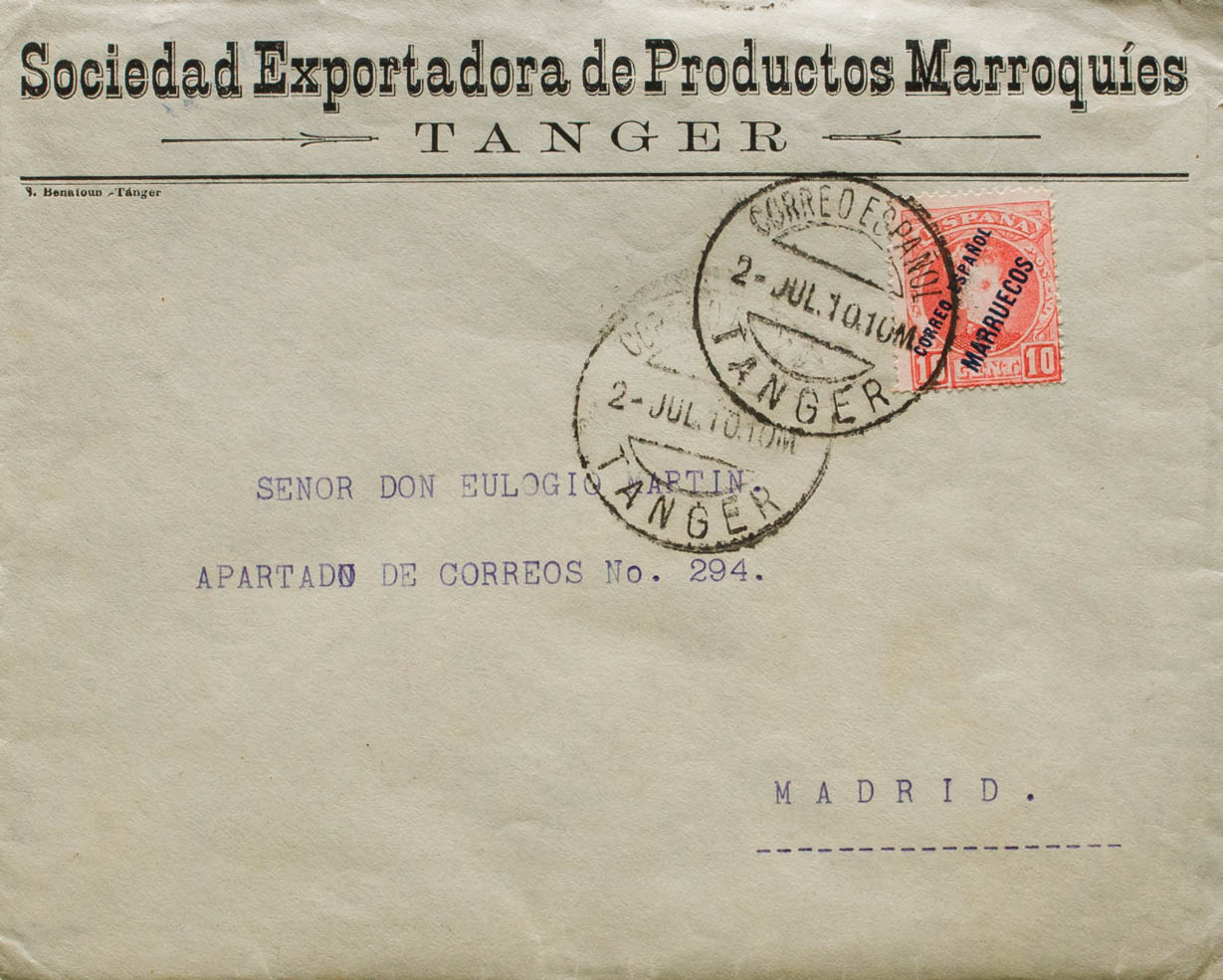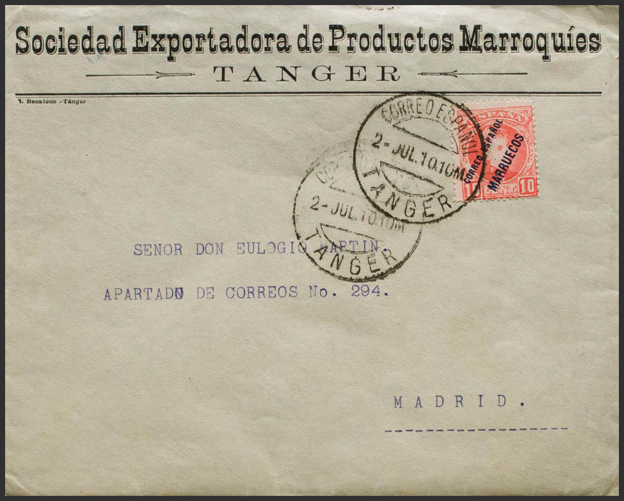 4. 1910. 10 cts red. TANGIER to MADRID. On the back arrival. MAGNIFICENT.